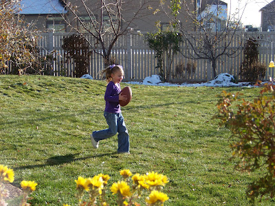 A few of the guys went out back to play some Thanksgiving tag football. Sweet Kaylee got in on some of the action too.